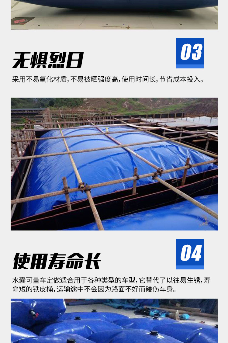密封型:它還可以用原材料進行分類:橡膠密封橋梁預壓水袋和PVC焊接密封水袋。橡膠密封水袋是由橡膠和布這兩種材料通過特殊工藝做成的,一個水袋容量為30~50噸。PVC焊接是用PVC構造膜通過裁剪+焊接做成的。橡膠水袋的特點是安全快捷,但是水袋的分量重,不容易操作,無法滿足試壓荷載的需求,所以用橡膠水袋的很少。PVC水袋的特點是分量輕、容量大、價格低廉,但是很容易遭到破損,需要在外圍加固,不能滿足荷載的需求。